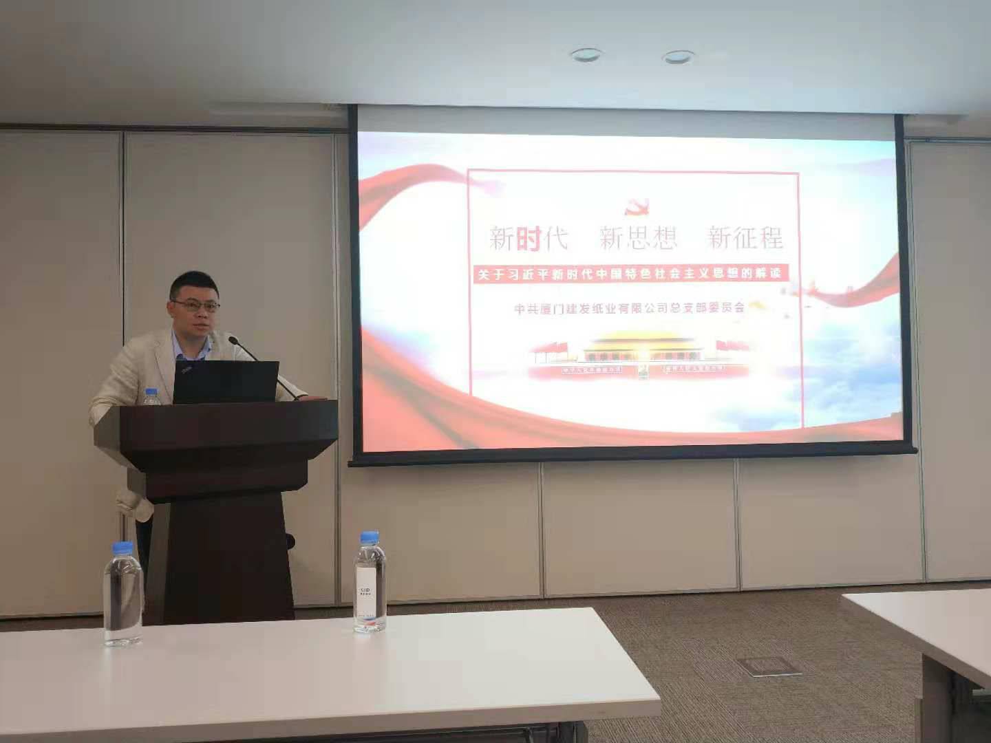 2018年10月23日,建发纸业总支书记程东方同志在建发大厦23楼4号会议室以《新时代、新思想新征程——关于习近平新时代中国特色社会主义思想的解读》为主题给纸业公司的党员们做了一次专题党课分享。